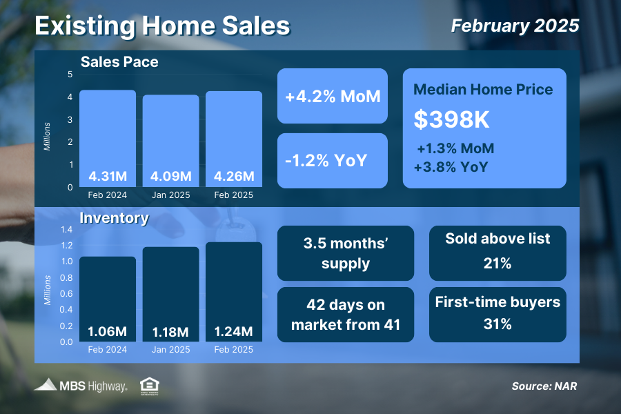 In February, existing home closings exceeded expectations, increasing by 4.2% compared to January when sales were sluggish to start the year. Additionally, inventory rose by 5.1%.