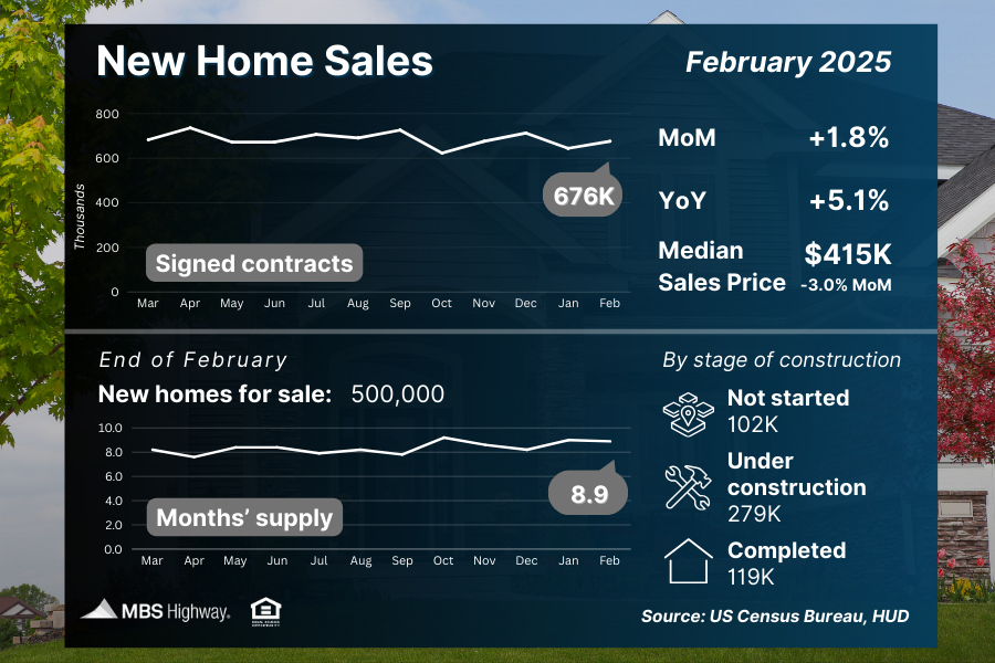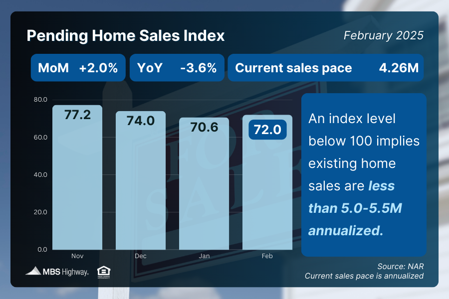 Signed contracts on new homes saw a 1.8% increase from January to February, reaching a pace of 676K units – just shy of estimates. Plus, sales are up a solid 5.1% year-over-year!